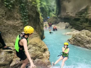 Hành trình tour vượt thác Kawasan đưa bạn leo qua vách đá dựng đứng. Không gian thác nước hùng vĩ bao quanh suốt hành trình. Giữa khung cảnh núi rừng hoang sơ, bạn lao mình xuống hồ nước trong vắt. Bạn thả trôi theo những thác ghềnh cuộn chảy đầy phấn khích. Mỗi khoảnh khắc đều mang đến cảm giác phấn khích tột độ. Bạn vừa thử thách giới hạn bản thân vừa tận hưởng vẻ đẹp thiên nhiên kỳ diệu. Hoạt động vượt thác Kawasan trong tour 1 ngày ở Cebu rất thú vị. Trải nghiệm này phù hợp cho du khách yêu thích mạo hiểm và phiêu lưu.