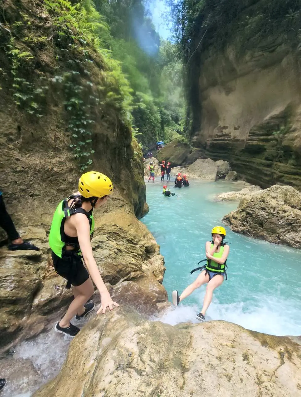 - Băng qua con thác, nhảy từ những vách đá cao xuống dòng thác trong vắt. Bạn hòa mình vào làn nước mát lạnh giữa thiên nhiên hoang sơ tại Kawasan.