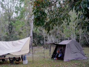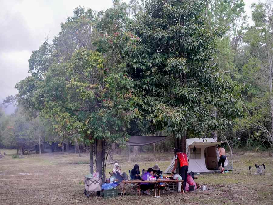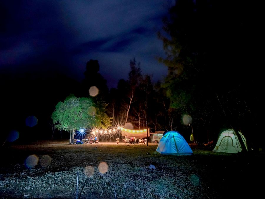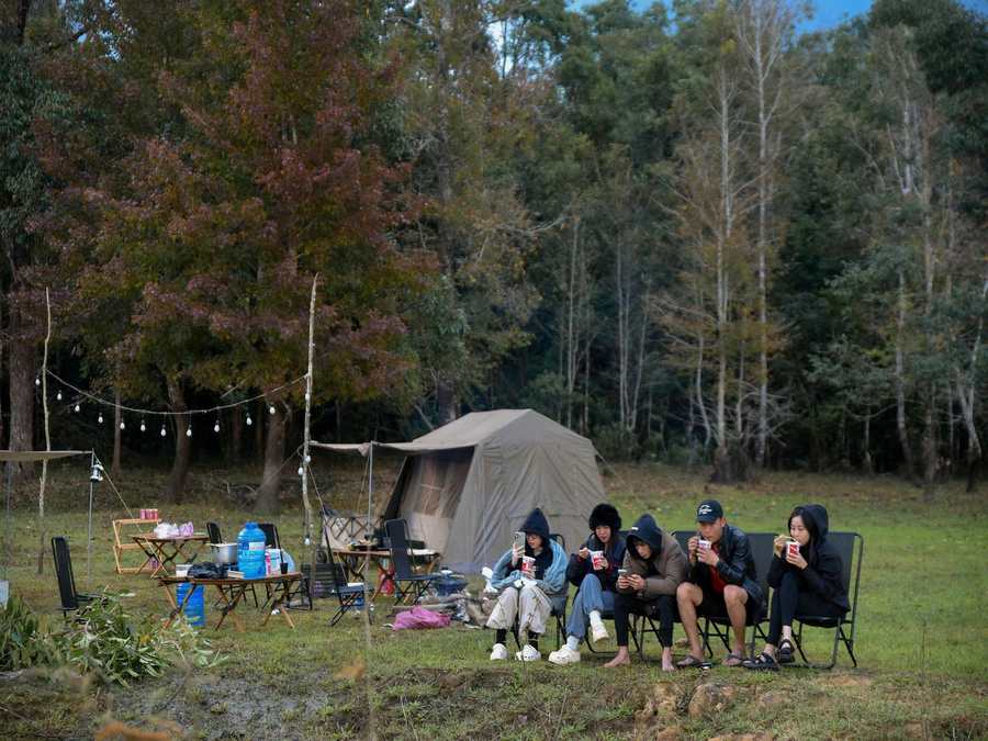 Cắm trại dưới cây cô đơn, tận hưởng khoảnh khắc thư giãn giữa thiên nhiên trong lành.