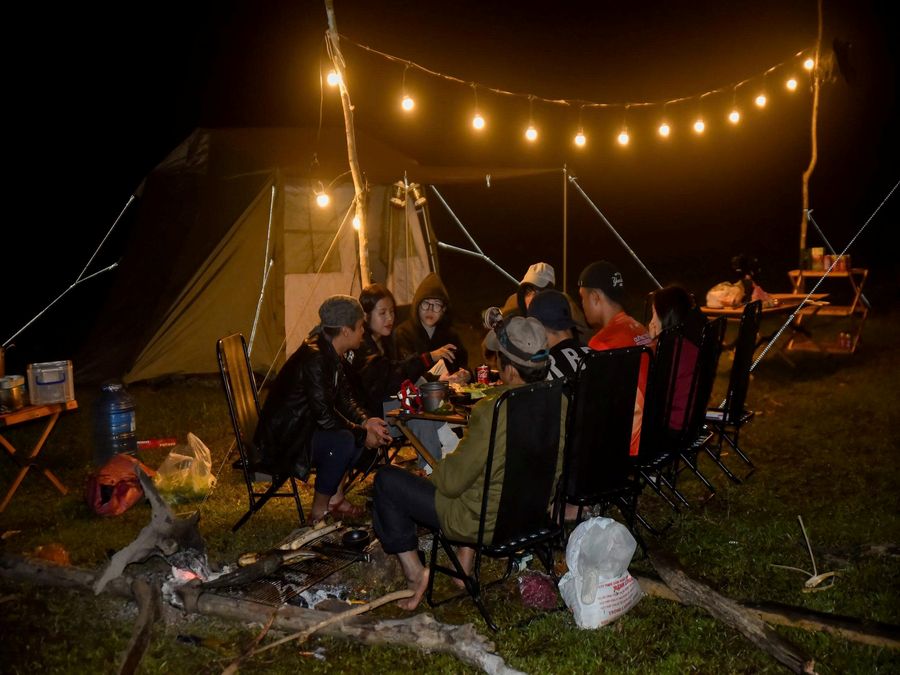 - Tự tay dựng lều dưới bóng cây cô đơn ở ven hồ trong tour cắm trại ở Khe Sanh.