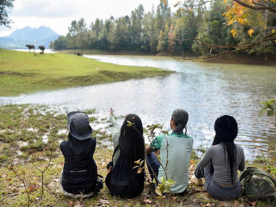 Ngắm bình minh bên hồ, mang đến không gian trong trẻo và bình yên.