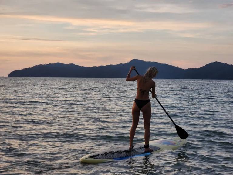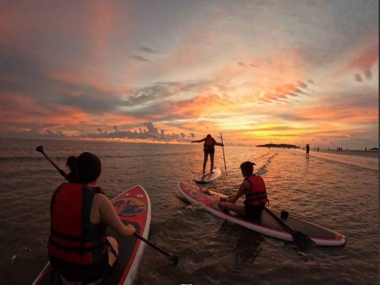 Nếu bạn chỉ có tour Malaysia 1 ngày, đừng bỏ lỡ chèo sup ngắm bình minh hoặc hoàng hôn. Thay vì ngắm cảnh từ bờ, bạn lướt nhẹ trên mặt nước, gần gũi thiên nhiên hoang sơ hơn. Cảm nhận làn gió mát phả vào mặt và ánh nắng chiếu lên mặt nước trong xanh. Khám phá động vật dưới biển và rạn san hô nhiều màu sắc. Mang đến trải nghiệm đầy thú vị. Mỗi khoảnh khắc trên SUP là cơ hội thư giãn và tận hưởng bình yên tuyệt đối.