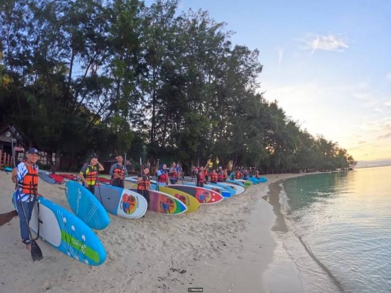 - Được hướng dẫn viên tận tình hướng dẫn cách chèo sup. Giúp bạn dễ dàng thích nghi và giữ thăng bằng khi du lịch Kota Kinabalu tự túc.