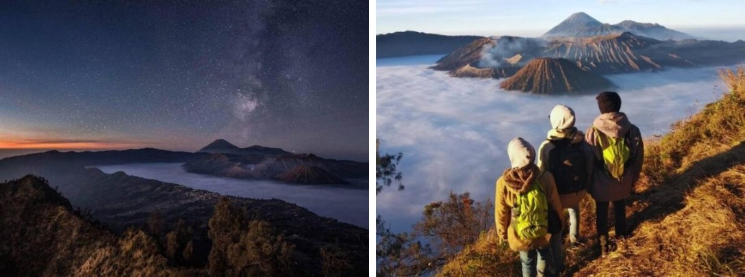 Đối với những tâm hồn lãng mạn, khoảnh khắc đứng trên đỉnh King Kong. Chính là giây phút tĩnh lặng và đong đầy cảm xúc nhất tour núi lửa Bromo từ Hà Nội. Trước khi ánh mặt trời ló dạng, bạn đi bộ 20 phút đến điểm ngắm toàn cảnh vườn quốc gia. Nơi dải ngân hà Milky Way lấp lánh hiện ra giữa bầu trời đêm trong vắt. Sự tĩnh lặng của núi rừng sẽ giúp tâm hồn bạn trở nên thanh tịnh hơn bao giờ hết. Khi những tia nắng đầu tiên nhuộm vàng quần thể núi lửa Bromo. Cả một vùng cao nguyên rộng lớn bỗng chốc rực sáng như được dát vàng. Làn sương mờ ảo cuộn tròn trong lòng núi lửa thay đổi màu sắc theo từng phút giây. Đây chính là “đặc sản” tuyệt vời nhất của hành trình tour đi Bromo Ijen. Nơi mọi giác quan đều được đánh thức trước sự vĩ đại của tạo hóa. Cảm giác đứng giữa mây ngàn, nhìn ngắm ngọn núi Semeru phía xa đang phun khói trầm hùng. Đây hứa hẹn sẽ là khoảnh khắc “đắt giá” nhất trong tour leo núi Bromo đó nha. Vẻ đẹp rực rỡ và choáng ngợp này chính là lý do khiến Đông Java trở thành điểm hẹn không thể bỏ qua cho các nhiếp ảnh gia và những người yêu thiên nhiên.