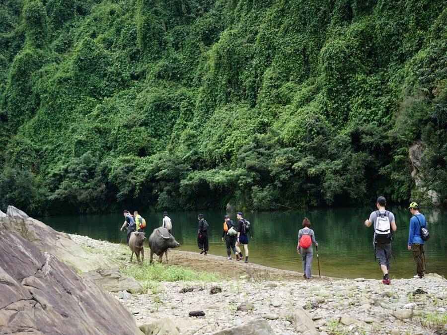 Hành trình trekking ngược sông Giăng đưa bạn bước vào một trong những cung đường đẹp và nguyên sơ. Bạn sẽ băng qua những bản nhỏ của người Đan Lai và người Thái. Khi đặt chân lên bờ, bạn men theo hai bờ sông với những đoạn ghềnh nước xiết. Đi qua những mảng rừng rậm rạp và tán cây cổ thụ đan thành mái vòm xanh mát. Khi trekking, bạn có thể bắt gặp những người “bạn” núi rừng của VQG. Càng tiến sâu về phía bản Cò Phạt, cảnh sắc càng nguyên sơ hơn. Cuối cùng, bạn sẽ trekking đến bản người Đan, một điểm dừng lý hoàn hảo để nghỉ ngơi. Đây là địa điểm trekking siêu hấp dẫn ở gần miền Bắc Trung Bộ.