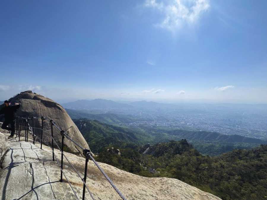 Khi tham gia tour trekking tại VQG Bukhansan, bạn sẽ tự mình chinh phục đỉnh Baegundae cao ngất 837m. Hành trình kéo dài khoảng 4 tiếng, đòi hỏi sức bền khi leo dốc và vượt qua những bậc đá dựng đứng. Lên tới đỉnh, bạn tận mắt chiêm ngưỡng những đỉnh núi đá granite hùng vĩ, những khu rừng tươi tốt và thoáng lấp ló xa xa những pháo đài, ngôi đền cổ kính. Đứng trên một độ cao nhất định, phóng tầm mắt bao hết vẻ đẹp mây nước hương trời ngút ngàn, cảm nhận được sự hùng vĩ của mẹ thiên nhiên tức khắc.