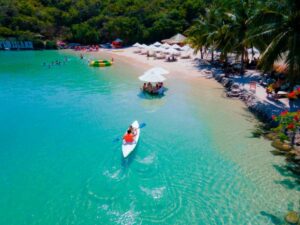 Tour trải nghiệm hướng về thiên nhiên của Trekking – Camping tại Cô Tiên, Nha Trang không thể thiếu hoạt động cắm trại sau khi leo núi. Bãi cắm trại sở hữu view biển xanh, cát trắng vô cùng nên thơ giữa nên trời trong xanh. Vào ban đêm, bạn vừa có thể lắng nghe tiếng sóng vỗ rì rào, tận hưởng hơi thở của biển cả vô cùng thư giãn. Vào buổi sớm mai, những tia nắng đầu tiên của bình minh sẽ đánh thức bạn. Ngoài ra, bạn có thể thuê riêng sup hoặc kayak để chèo thuyền (Chi phí tự túc)