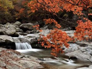 Mùa thu tại núi Jiri là thời điểm lý tưởng để bạn đắm chìm trong vẻ đẹp rực rỡ của rừng lá phong. Mỗi bước chân trên hành trình tour trekking núi Jiri đều là một khung hình tuyệt mỹ. Dọc đường trekking, bạn sẽ bắt gặp những con suối trong vắt len lỏi qua rừng phong. Bạn có thể check-in và lưu lại những bức hình xuất thần ghi vào kinh nghiệm du lịch Busan của bạn.