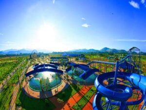 Kết thúc hành trình trekking ở VQG Xuân Sơn, bạn sẽ đến với Đảo Ngọc Xanh. Đảo Ngọc Xanh là một trong những địa điểm du lịch vui chơi, giải trí đang hot ở Phú Thọ. Đây là nơi hội tụ hàng loạt trò giải trí đầy hấp dẫn. Từ các trò cảm giác mạnh như tàu lượn và đu quay lốc xoáy đến khu trượt nước mát lạnh. Trải nghiệm trò chơi đầy thú vị đều mang lại cảm giác phấn khích tột độ trong tour du lịch ở Phú Thọ. Không chỉ vậy, bạn còn có thể thư giãn với chèo thuyền, đạp vịt,… Trải nghiệm những hoạt động giải trí sau hành trình khám phá Vườn Quốc gia Xuân Sơn, Phú Thọ.