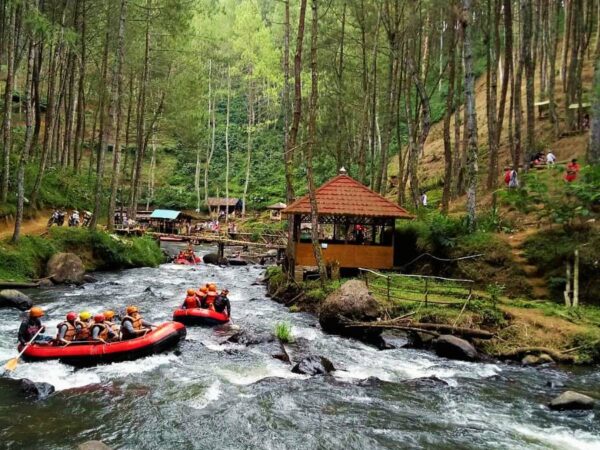 Sông Pangalengan là địa điểm du lịch ở Bandung tổ chức tour chèo thuyền vượt thác nổi tiếng và được đánh giá khá dễ ngay cả với những bạn chưa có kinh nghiệm rafting từ trước.