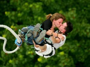 Nếu bạn chưa sẵn sàng nhảy bungy một mình, hãy thử nhảy đôi cùng đồng bọn đầy thú vị. Khi hai trái tim cùng chung nhịp đập, cảm giác ấy thật khó quên.Nhảy đôi mang đến niềm vui nhân đôi, nỗi sợ và sự phấn khích hòa làm một. Adrenaline tăng vọt khi cả hai cùng bungy tại Skypark Sentosa giữa không trung. Bạn có thể đặt vé nhảy đôi của Trekking-Camping khi tham gia tour 1 ngày du lịch tự túc tại Singapore ngay hôm nay.
